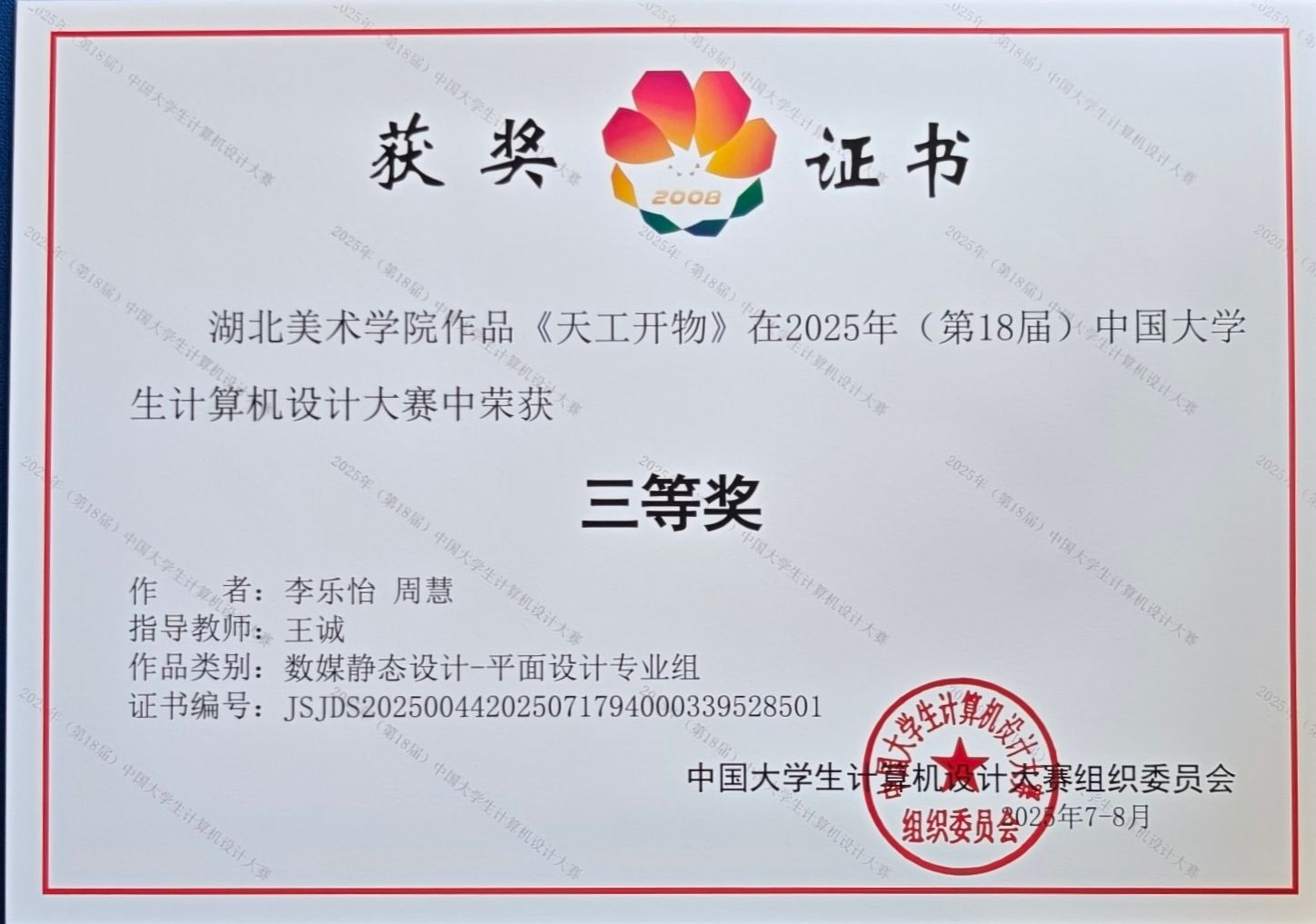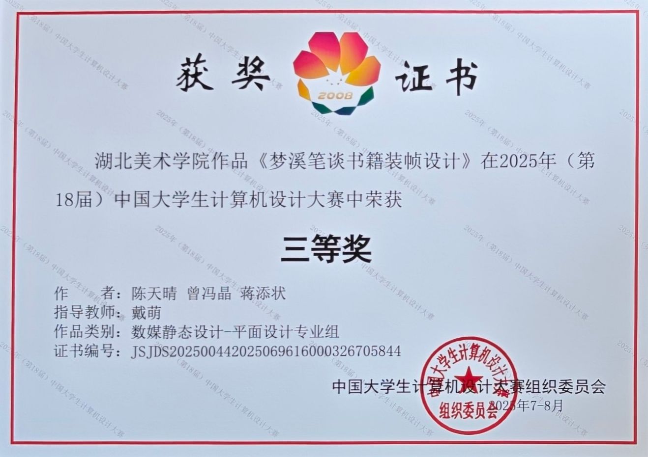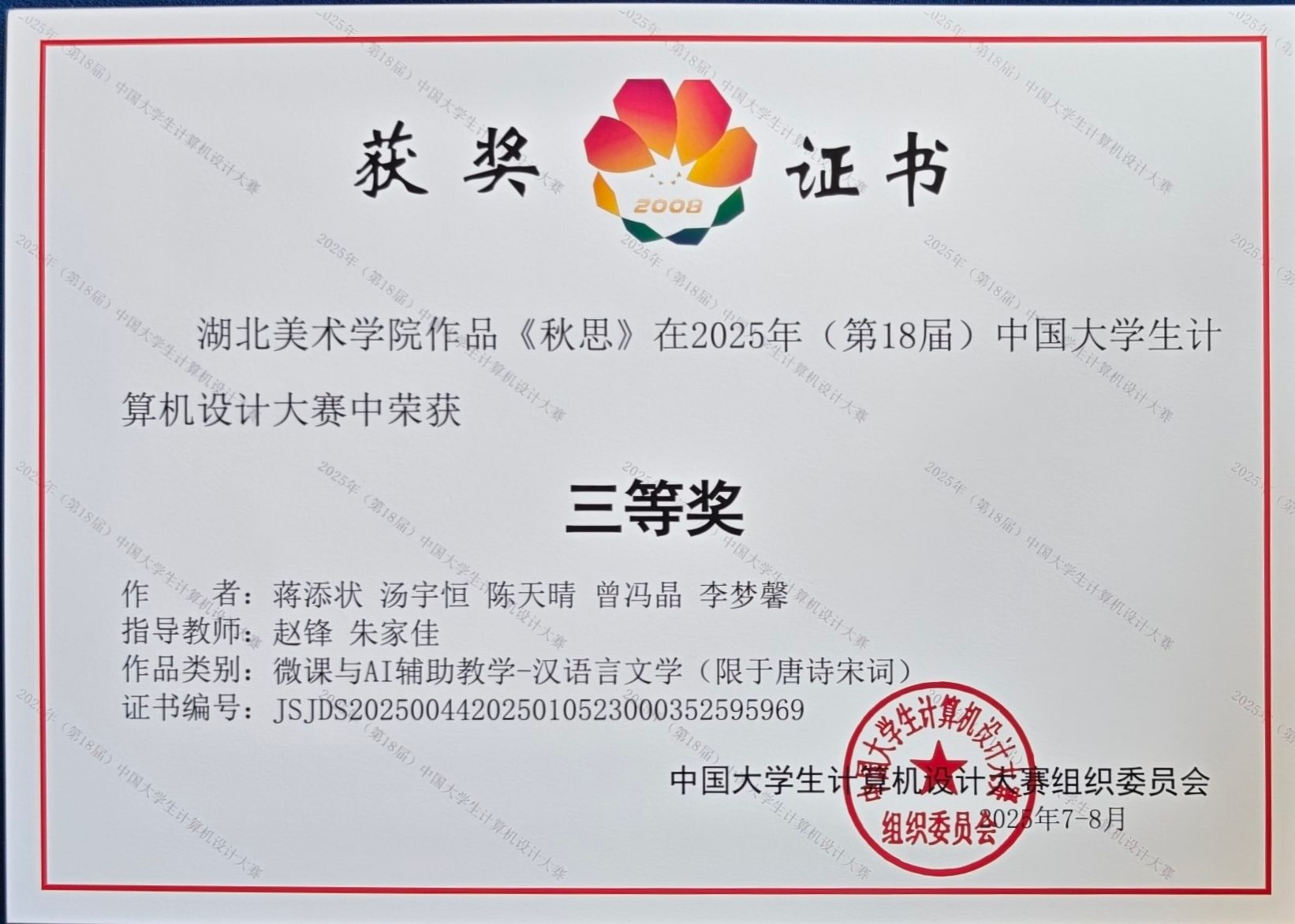 近日,第18届中国大学生计算机设计大赛国赛圆满落幕,我们学子们在此次大赛中表现突出,分别在微课与AI辅助教学、数媒静态设计两个赛道国赛中共斩获3项三等奖。